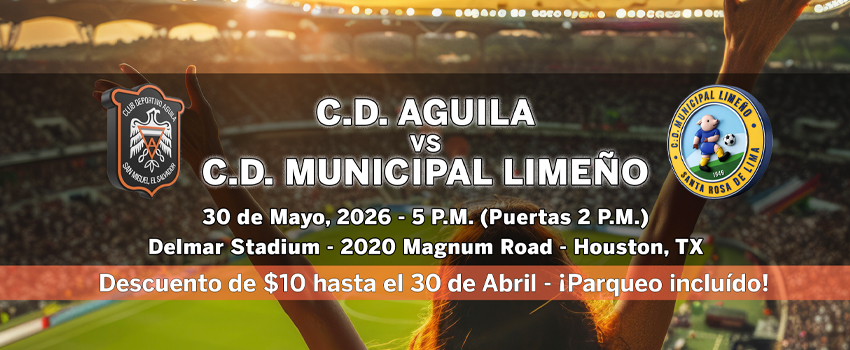 Por primera vez en Sugar Land, Texas, C.D. Águila y Alianza F.C., los campeones más icónicos de la Primera División de El Salvador, se enfrentan en un verdadero Clásico Centroamericano. El orgullo, la historia y el legado de campeonato chocan en un partido que todo aficionado debe presenciar.