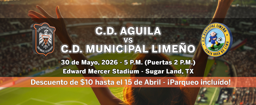 Por primera vez en Sugar Land, Texas, C.D. Águila y Alianza F.C., los campeones más icónicos de la Primera División de El Salvador, se enfrentan en un verdadero Clásico Centroamericano. El orgullo, la historia y el legado de campeonato chocan en un partido que todo aficionado debe presenciar.